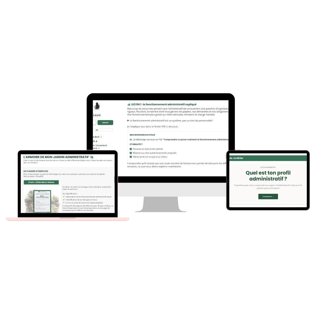 C’est dans cette perspective que j'ai créé Mon Jardin administratif : un espace structuré qui permet d’apprendre progressivement à gérer son administratif et à développer son organisation, de manière plus claire et plus autonome.
