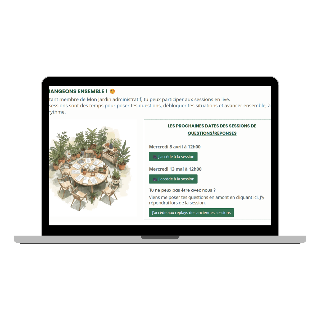 En rejoignant Mon Jardin administratif, tu auras immédiatement accès à un espace pensé pour t'accompagner pas à pas et te permettre de reprendre le contrôle de ton quotidien administratif.